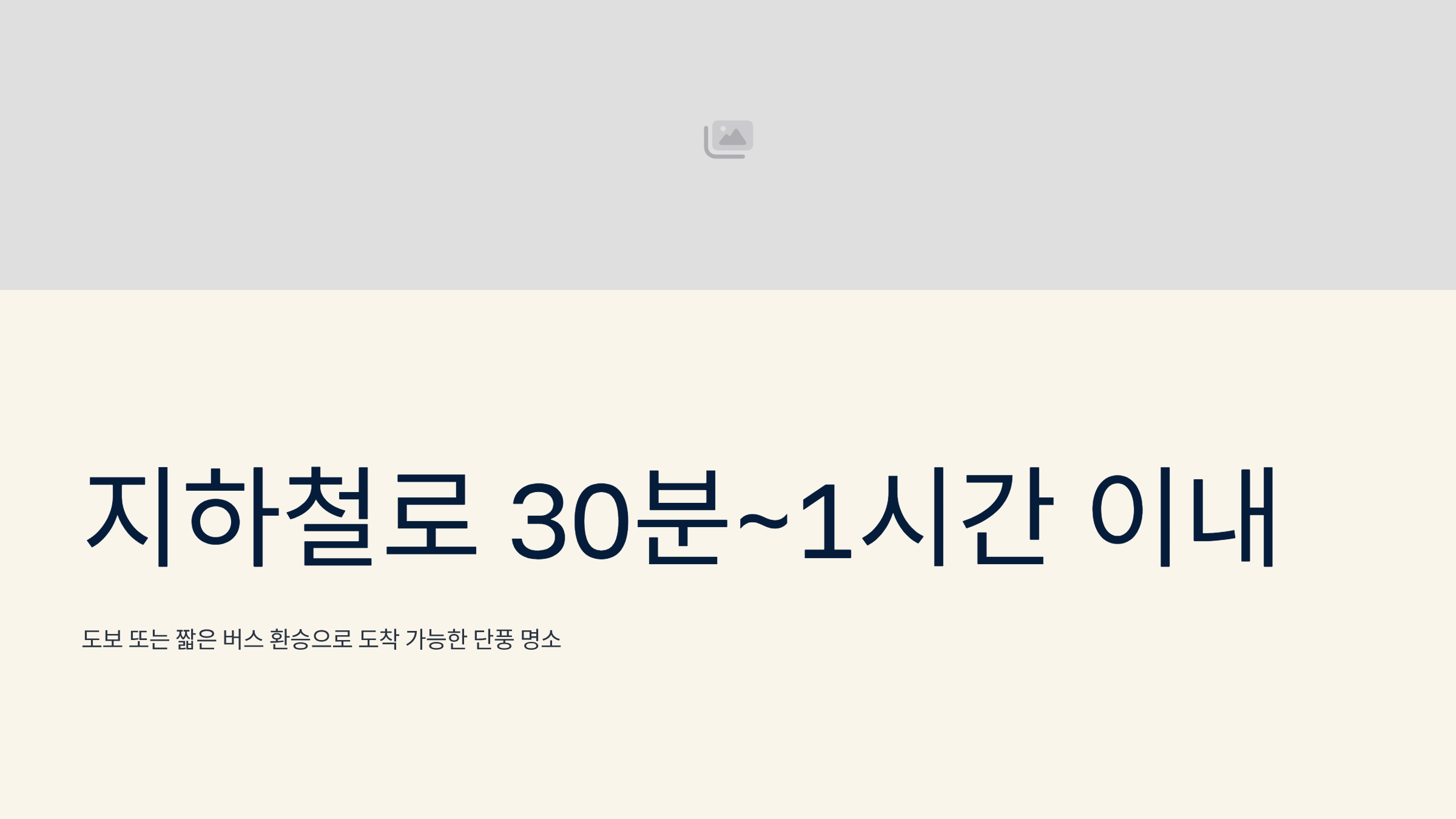 수도권 지하철역 하차 후 도보 또는 짧은 버스 환승으로 1시간 이내에 도착할 수 있는, 가성비 최고의 단풍 명소 5곳입니다.