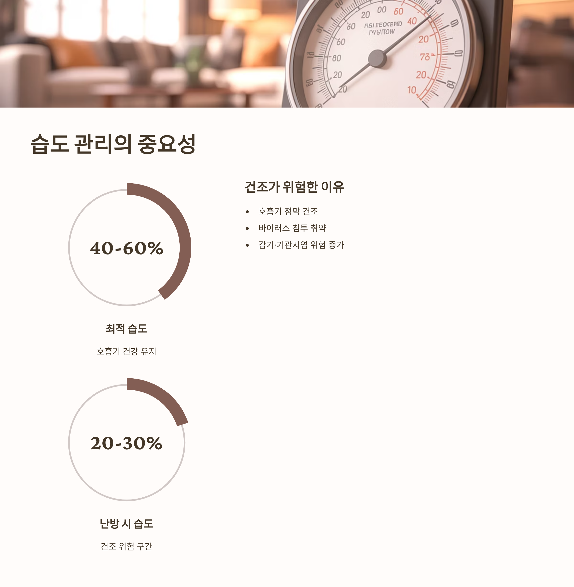 겨울철 실내 환경에서 온도만큼 중요한 것이 습도입니다. 실내 습도가 낮으면 호흡기 건강에 치명적인 영향을 미칠 수 있습니다.