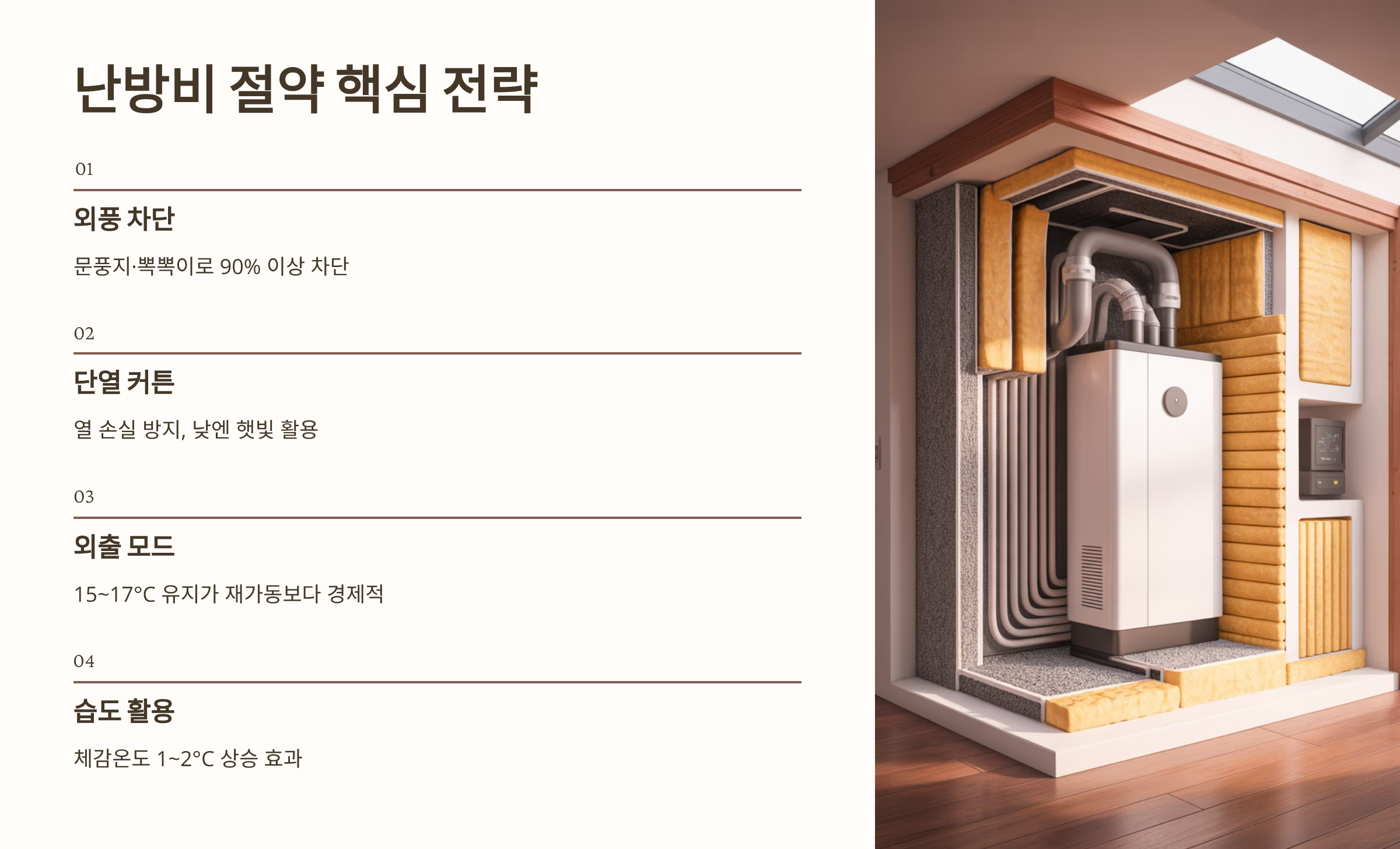 실내적정온도를 유지하면서도 난방비를 절약할 수 있는 '난방 효율 극대화' 노하우입니다.