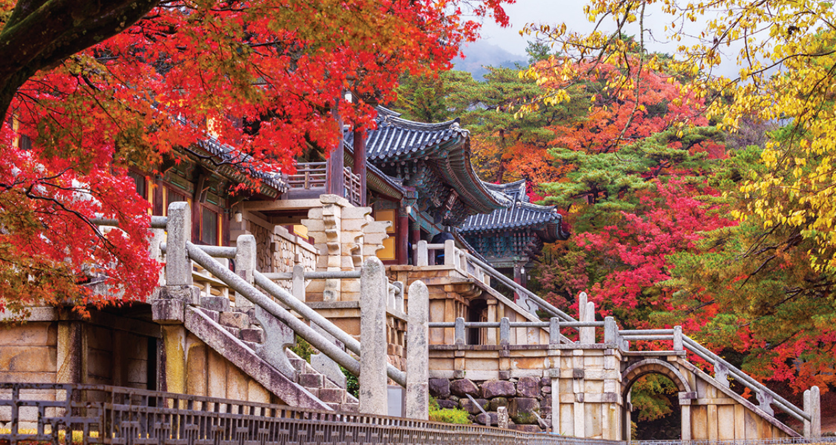 불국사는 경주 단풍 여행의 대표 명소입니다. 다보탑, 청운교, 백운교 같은 문화재 사이로 붉은 단풍잎이 흩날리며 만들어내는 풍경은 그야말로 장관입니다.