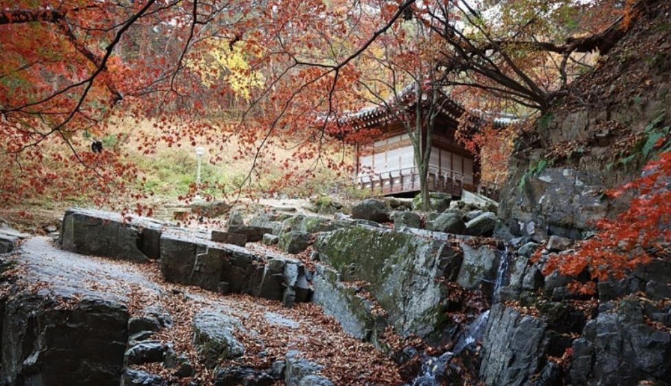 법당 앞에 서면 붉은 단풍잎이 하늘을 가득 메우고, 떨어진 낙엽이 돌계단 위를 덮어 마치 단풍 카펫처럼 펼쳐집니다. 이곳은 특히 ‘고요함’을 느끼고 싶은 사람들에게 추천할 만한 장소입니다.