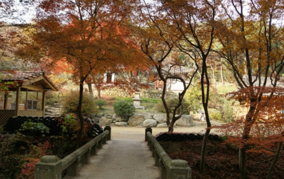 이곳은 단풍잎이 유난히 붉고 진한 색을 띱니다. 주변 숲길을 따라 걷다 보면 붉은 단풍잎이 하늘을 가득 채우고, 발밑에는 낙엽이 수북이 쌓여 있습니다. 마치 시간마저 천천히 흐르는 듯한 고요함이 이곳의 매력입니다.