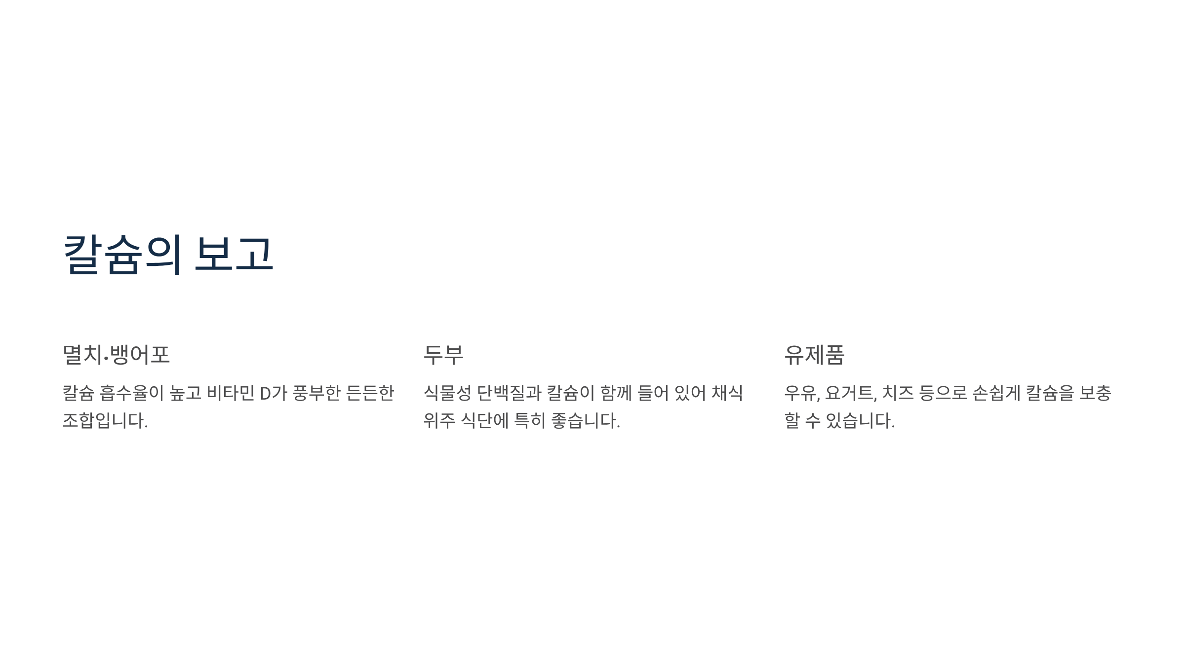 이제 가장 중요한 부분, 골다공증에 좋은 음식을 정리해볼게요.