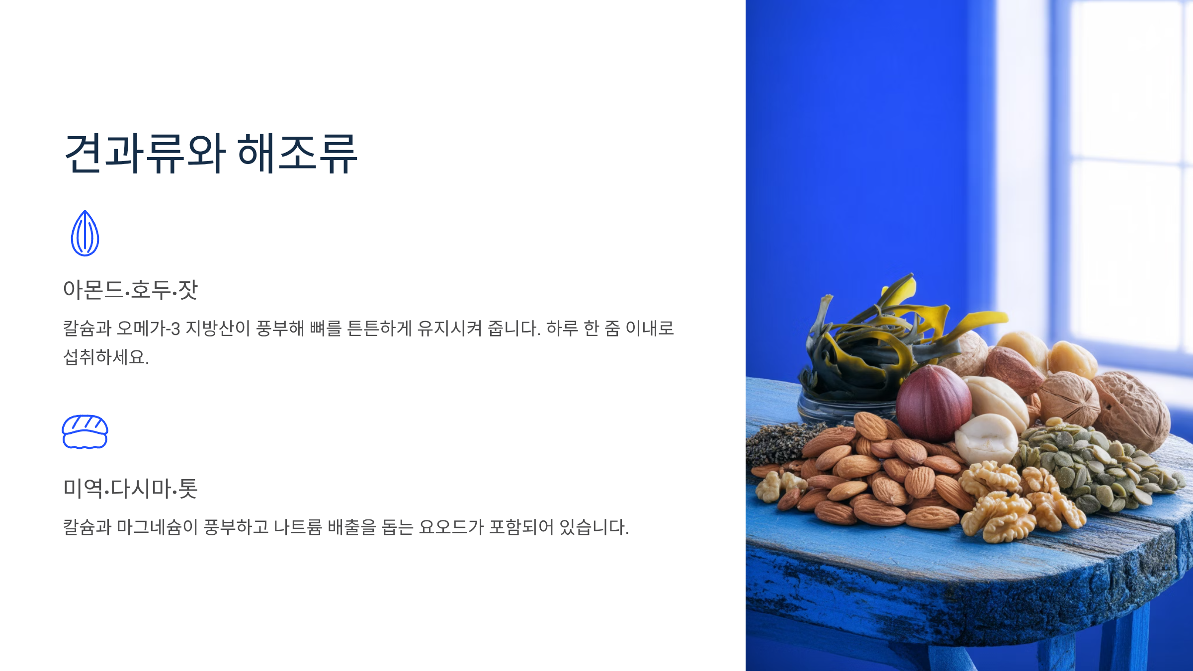 ‘약보다 좋은 음식’이라는 말은 단순한 비유가 아닙니다. 꾸준한 식습관이야말로 뼈 건강의 근본이니까요.