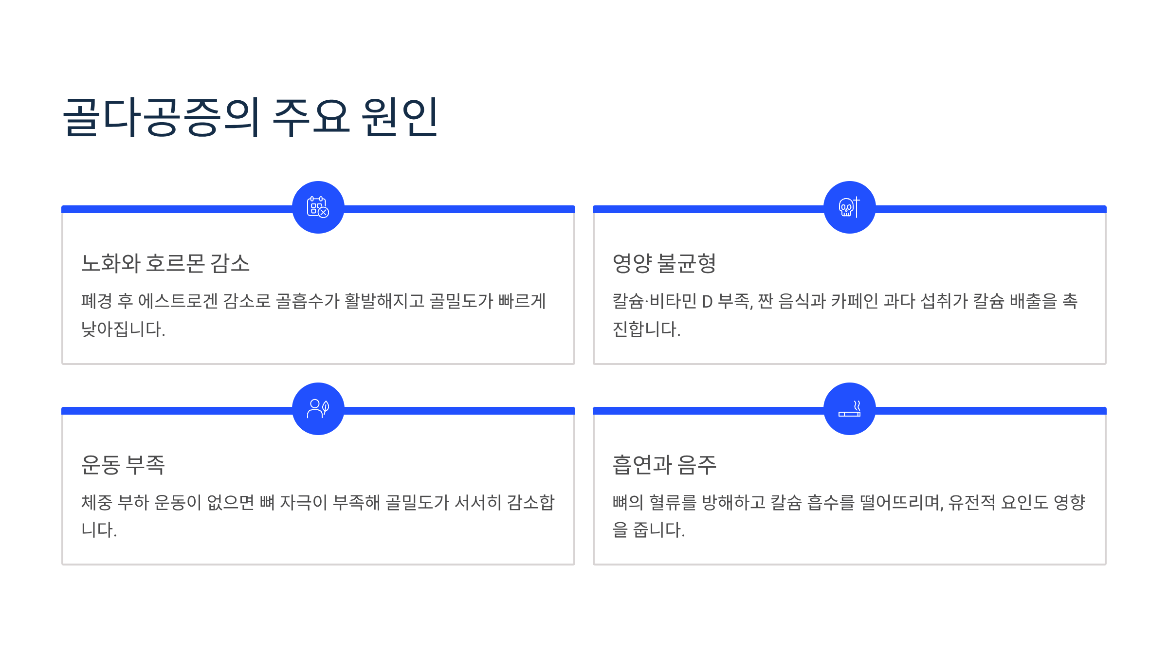골다공증은 단순히 칼슘 부족만이 아니라 여러 요인이 복합적으로 작용합니다.