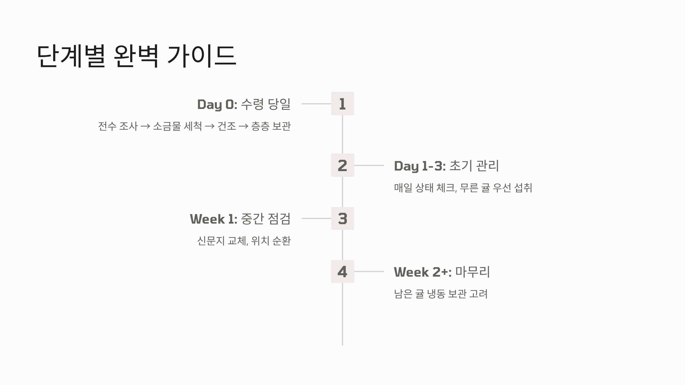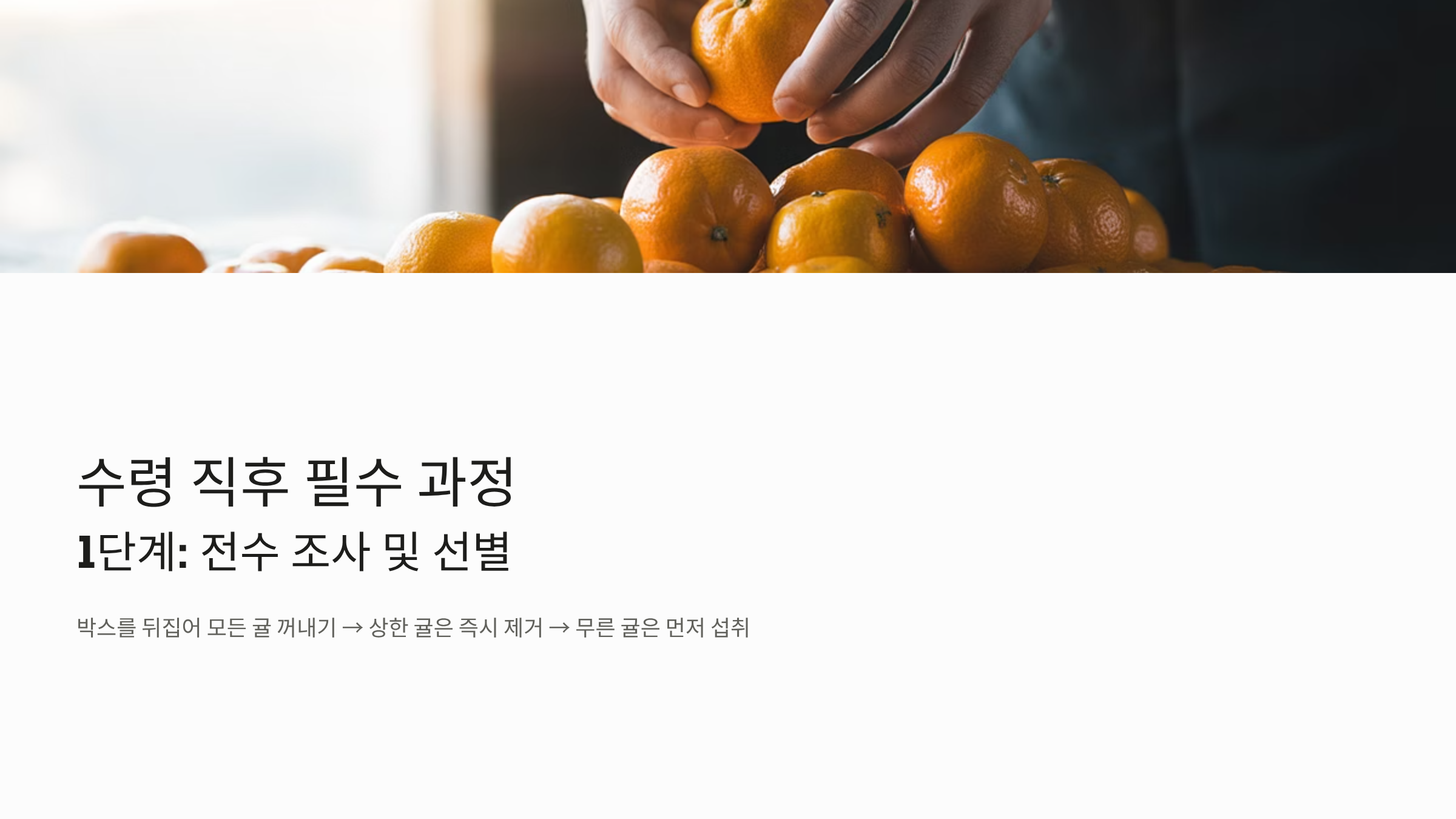 박스 귤을 받자마자 가장 먼저 해야 할 일은 '뒤집기'와 '목욕'입니다. 이 과정을 거치면 보관 기간이 획기적으로 늘어납니다.