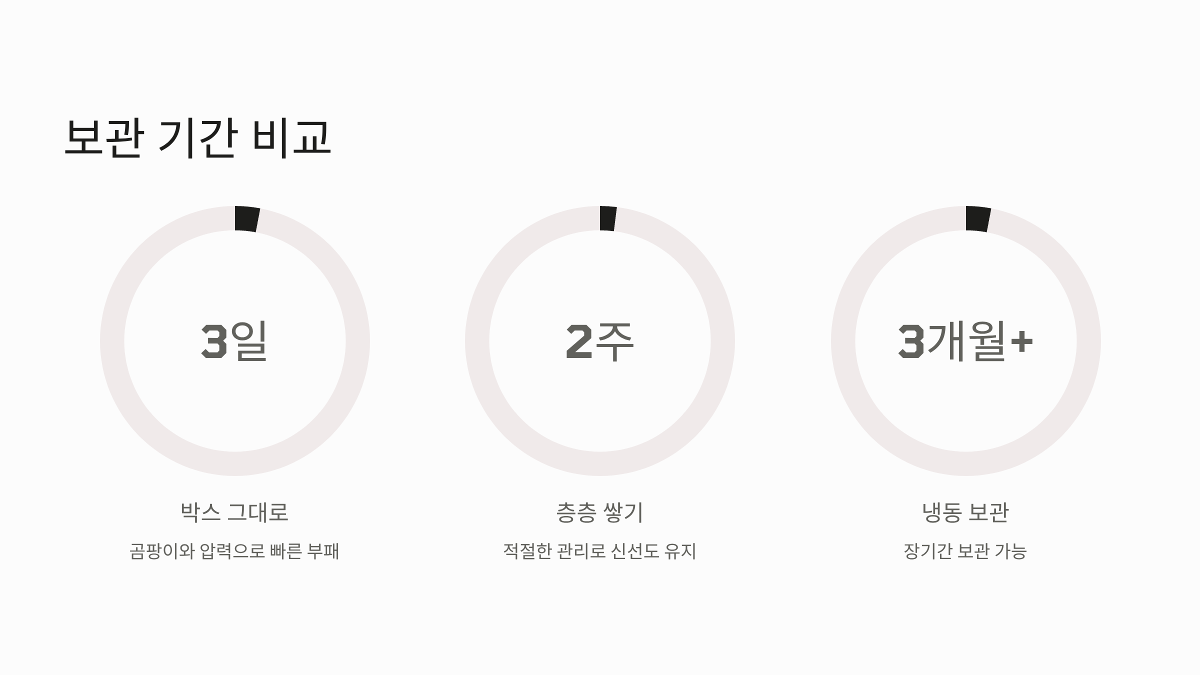 - 밀폐된 환경: 귤은 호흡하는 과일인데, 꽉 막힌 박스 안에서는 공기 순환이 되지 않아 자체 발생한 수분과 열기로 인해 부패 속도가 빨라집니다.
