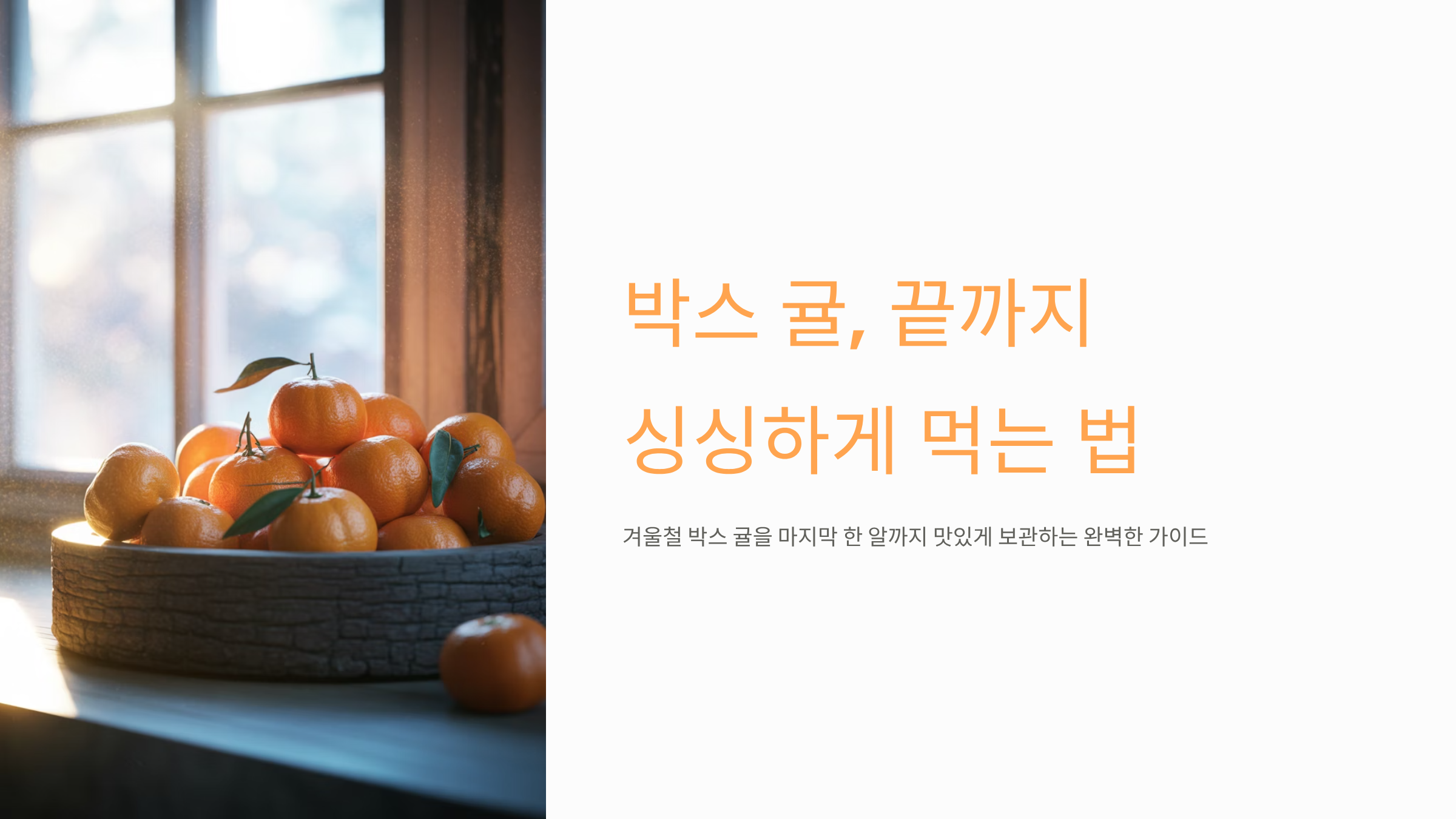 많은 분들이 궁금해하는 '귤 보관방법'의 핵심은 귀찮음을 이겨내는 초기 대응에 있습니다. 박스째 그대로 두고 하나씩 꺼내 먹는 습관만 버려도 보관 기간을 2배 이상 늘릴 수 있습니다. 이 포스팅은 박스 귤을 끝까지 무르지 않고 싱싱하게, 그리고 더 달콤하게 즐길 수 있는 단계별 보관 노하우와 냉동 보관 팁까지 완벽하게 정리해 드리겠습니다.