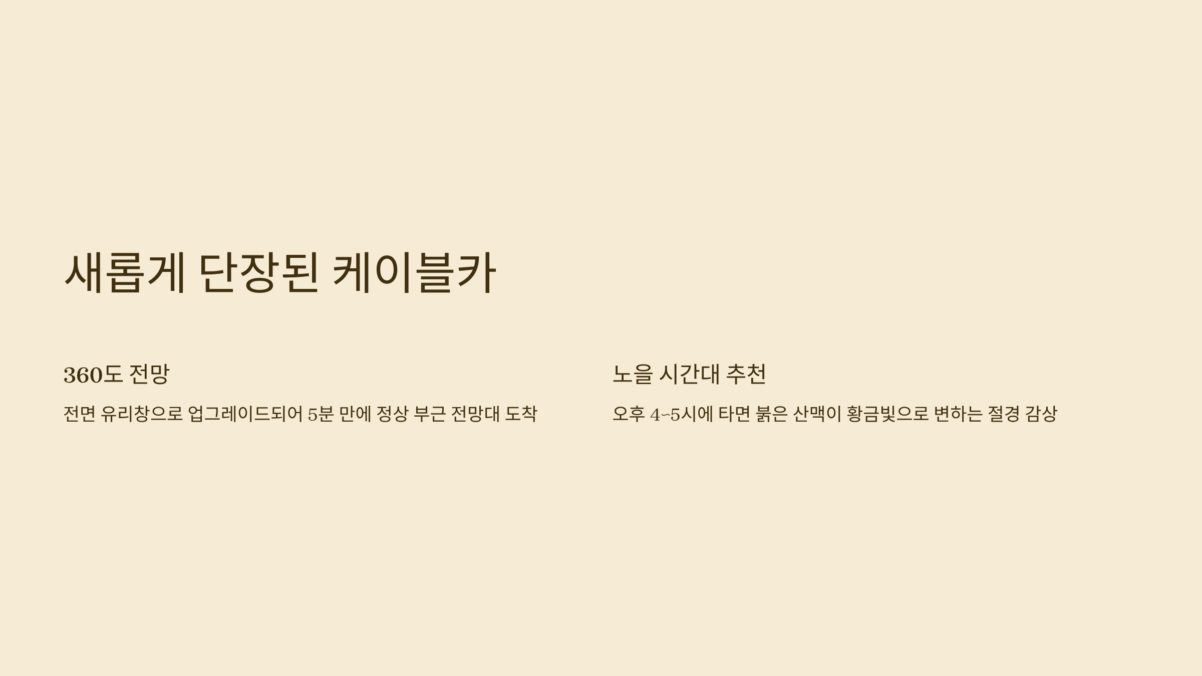 - 케이블카 왕복권은 미리 예매해두면 대기 시간을 단축할 수 있습니다.