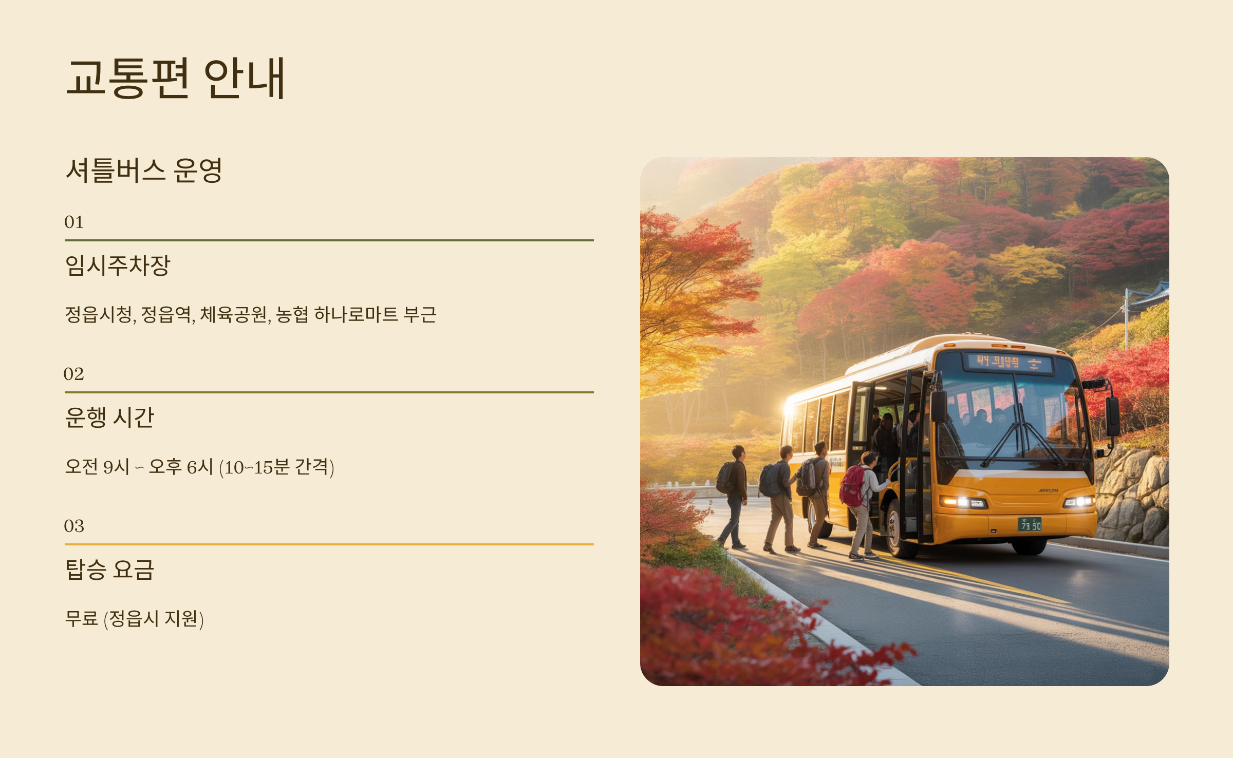정읍시는 매년 셔틀버스 및 임시주차장을 운영합니다.