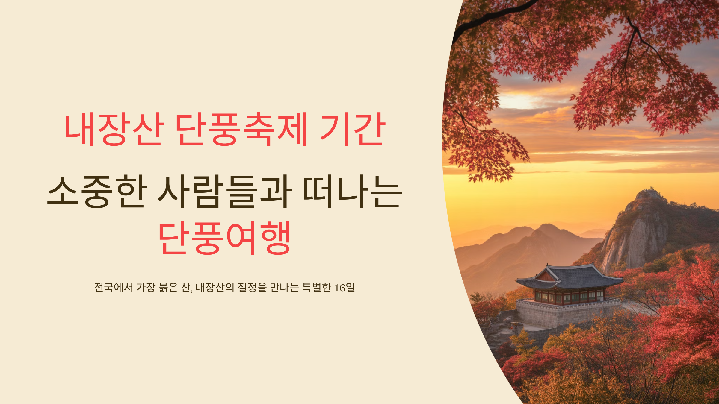 2025년 내장산 단풍축제는 10월 26일(일)부터 11월 10일(월)까지 16일간 열릴 예정입니다.