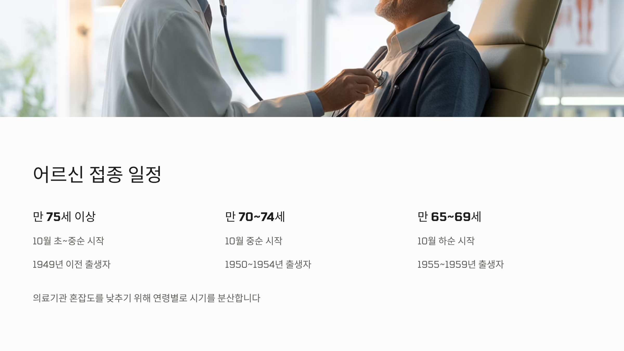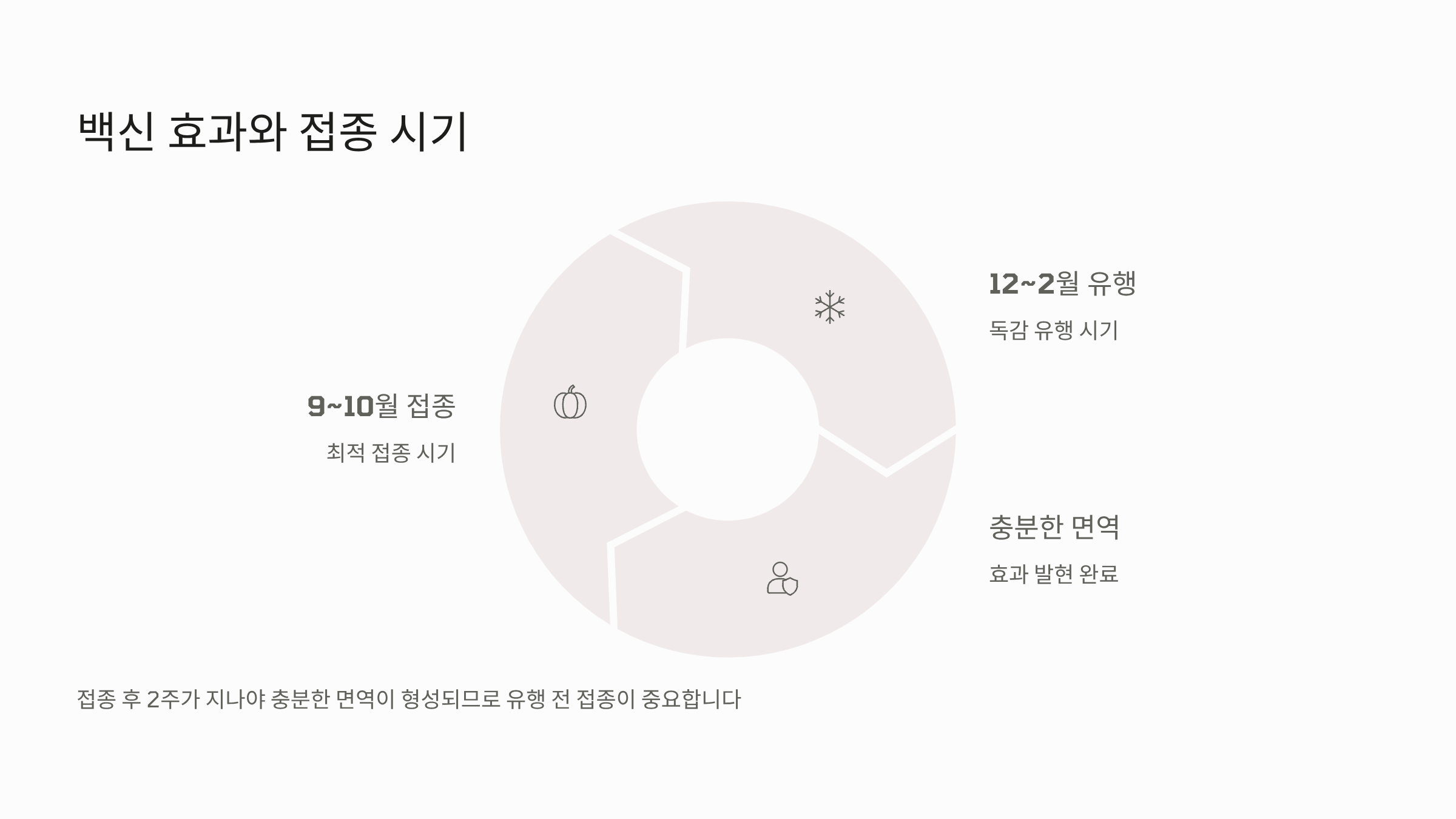 - 접종 시기: 보통 10월 초~중순부터 시작하여 12월 말까지 진행됩니다.