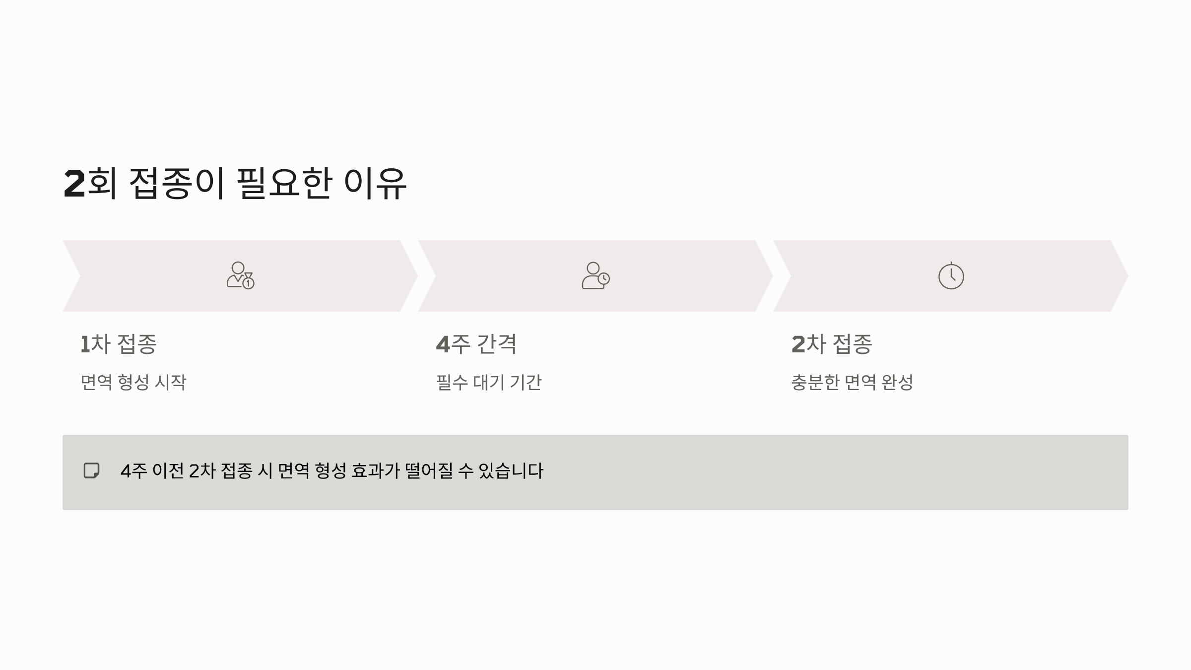 - 접종 스케줄 관리: 2회 접종이 필요한 어린이는 첫 접종 후 4주 뒤에 두 번째 접종을 받아야 하며, 예약 시 이 날짜를 함께 관리해야 합니다. 1차 접종 후 4주 이전에 2차 접종을 하면 면역 형성 효과가 떨어질 수 있습니다.