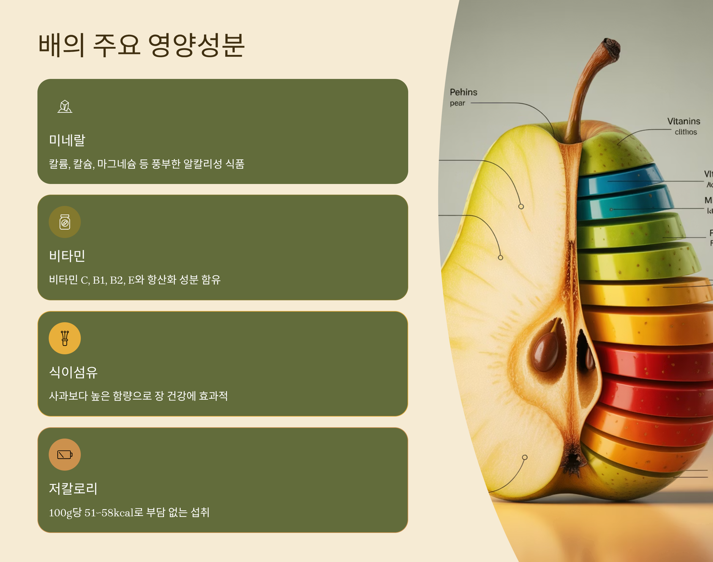 특히 배 효능은 오래 전부터 동의보감을 비롯한 다양한 한의 문헌에서도 기침과 기관지에 효과적인 과일로 기록되어 왔으며, 최근 영양 성분 및 과학적 연구를 통해 그 효능이 입증되고 있습니다. 오늘은 배의 주요 영양성분, 대표적 효능 10가지, 올바른 섭취 방법, 기침할 때 만들어먹을 수 있는 레시피, 그리고 부작용까지 꼼꼼하게 알려드립니다.
