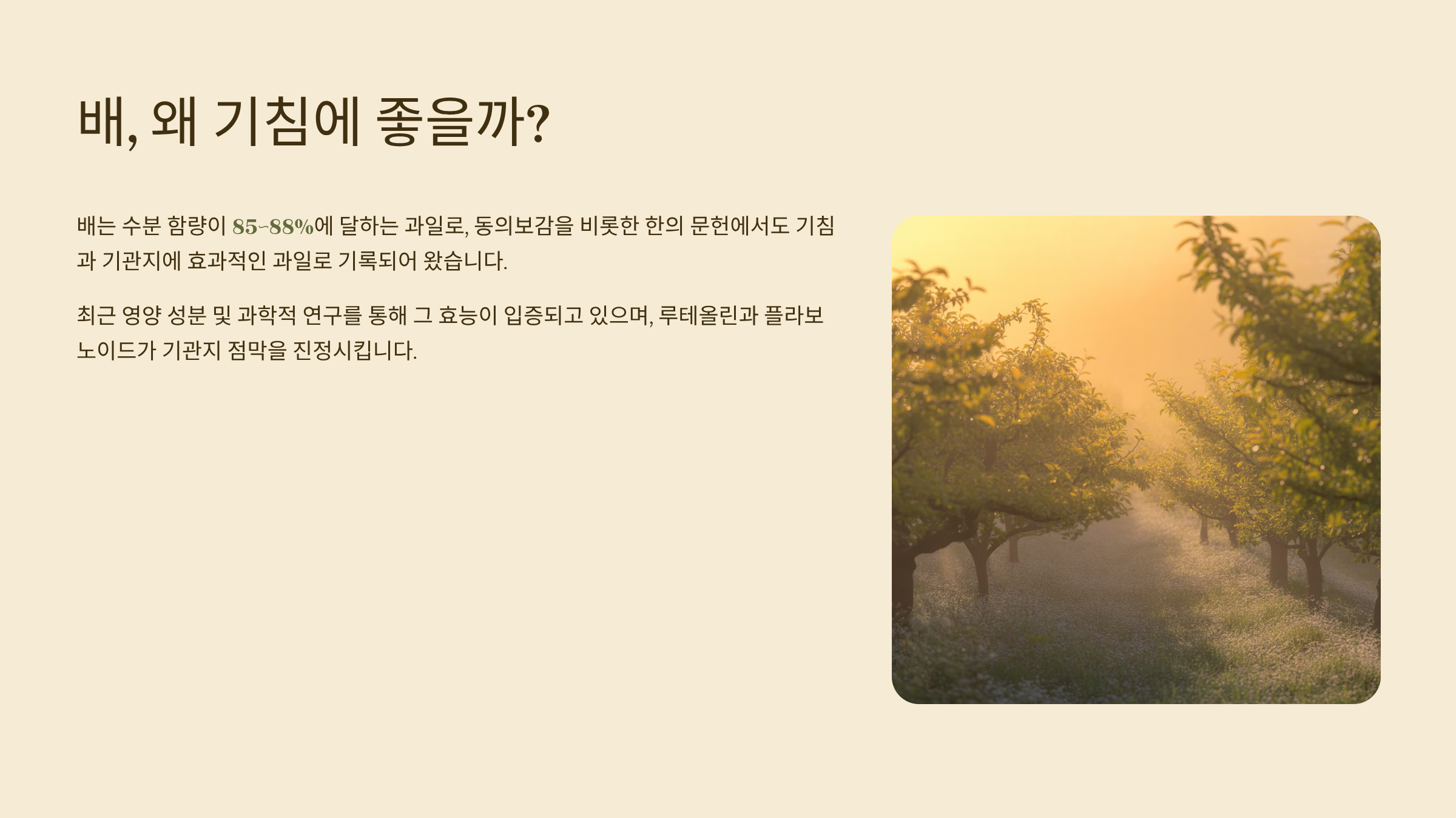 기침·가래를 완화하는 데 실질적인 도움이 되는 배 활용법을 소개합니다.