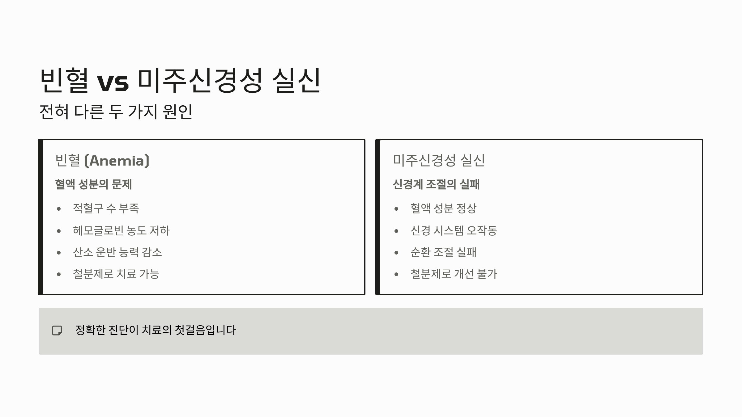 3. 빈혈과 다른 점: 혈액 성분 문제가 아닌 신경계 조절 실패의 차이