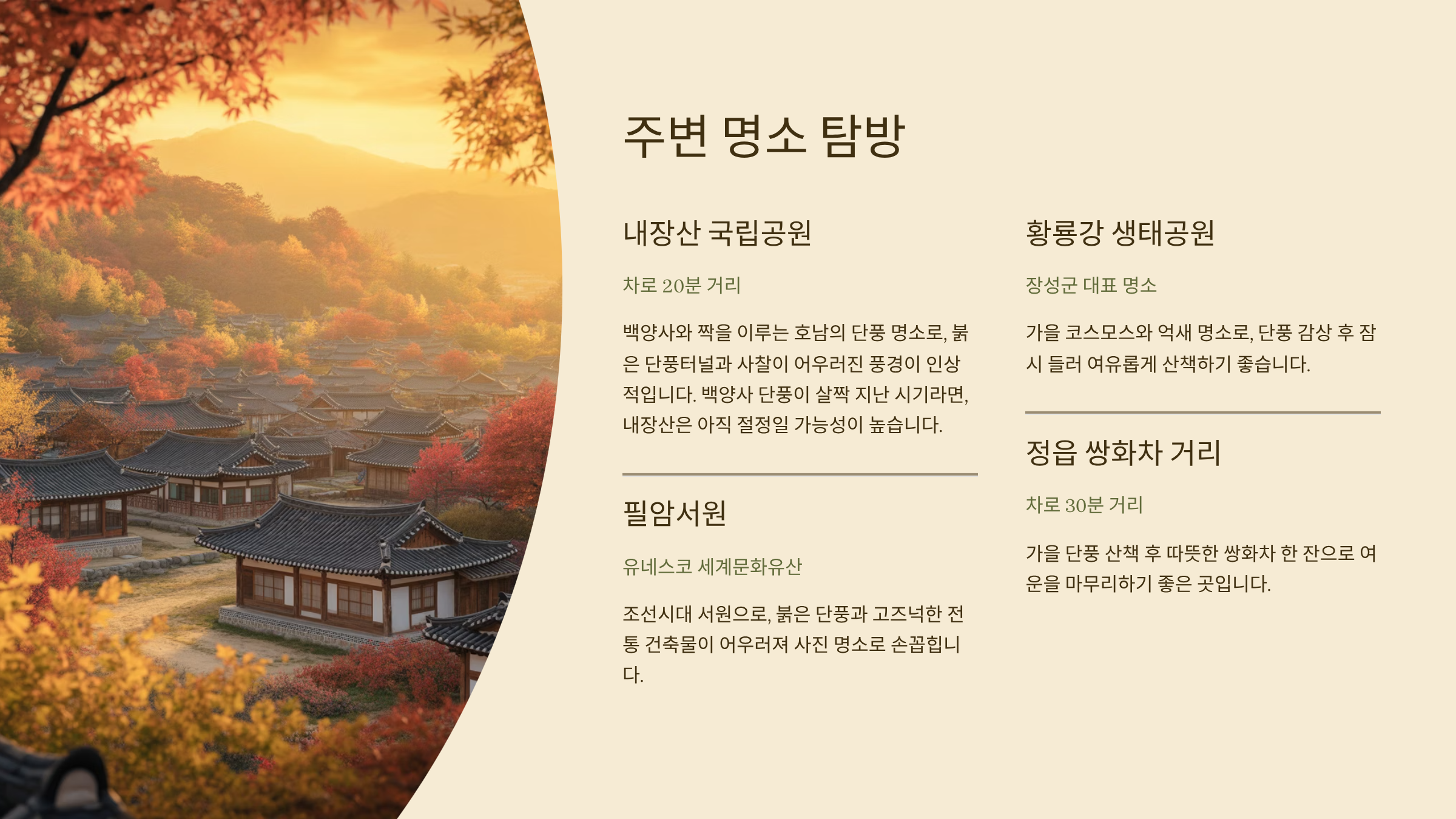 - 내장산 국립공원 (차로 20분 거리)