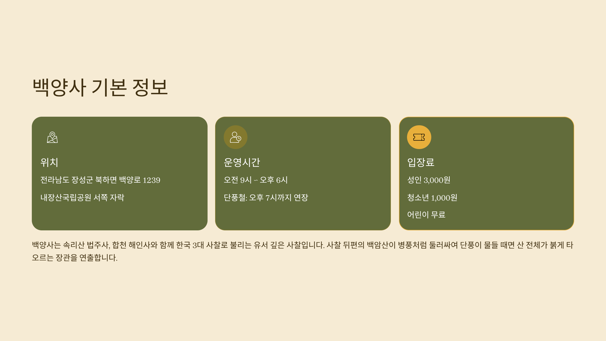 - 주소: 전라남도 장성군 북하면 백양로 1239 (백양사)