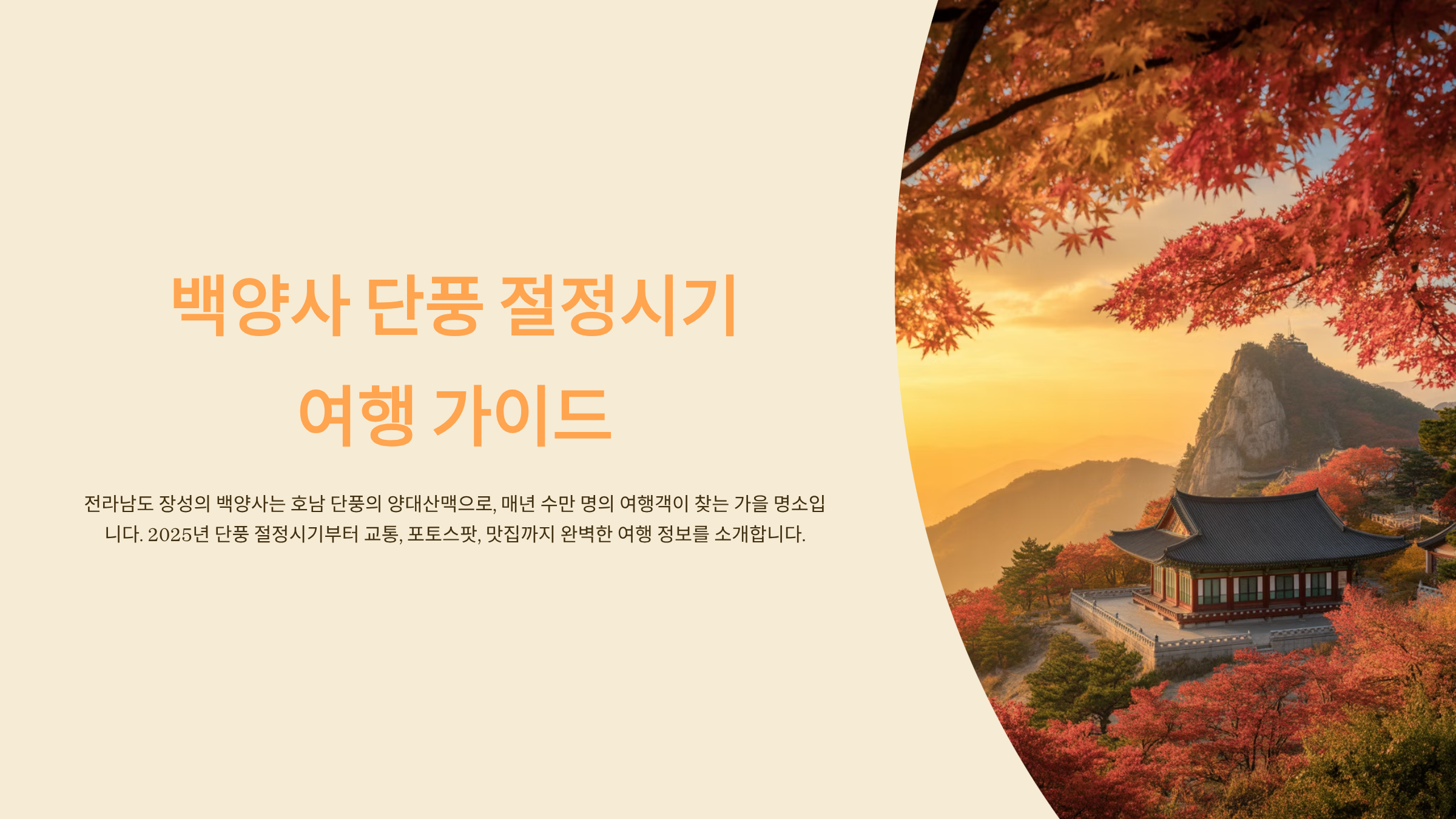 이번 글에서는 2025년 백양사 단풍 절정시기부터 교통·주차, 포토스팟, 근처 맛집까지
