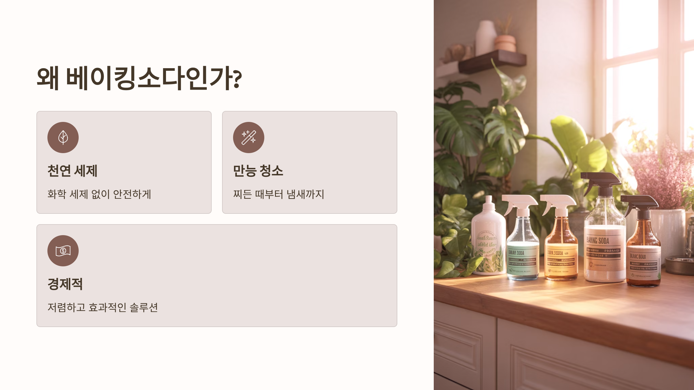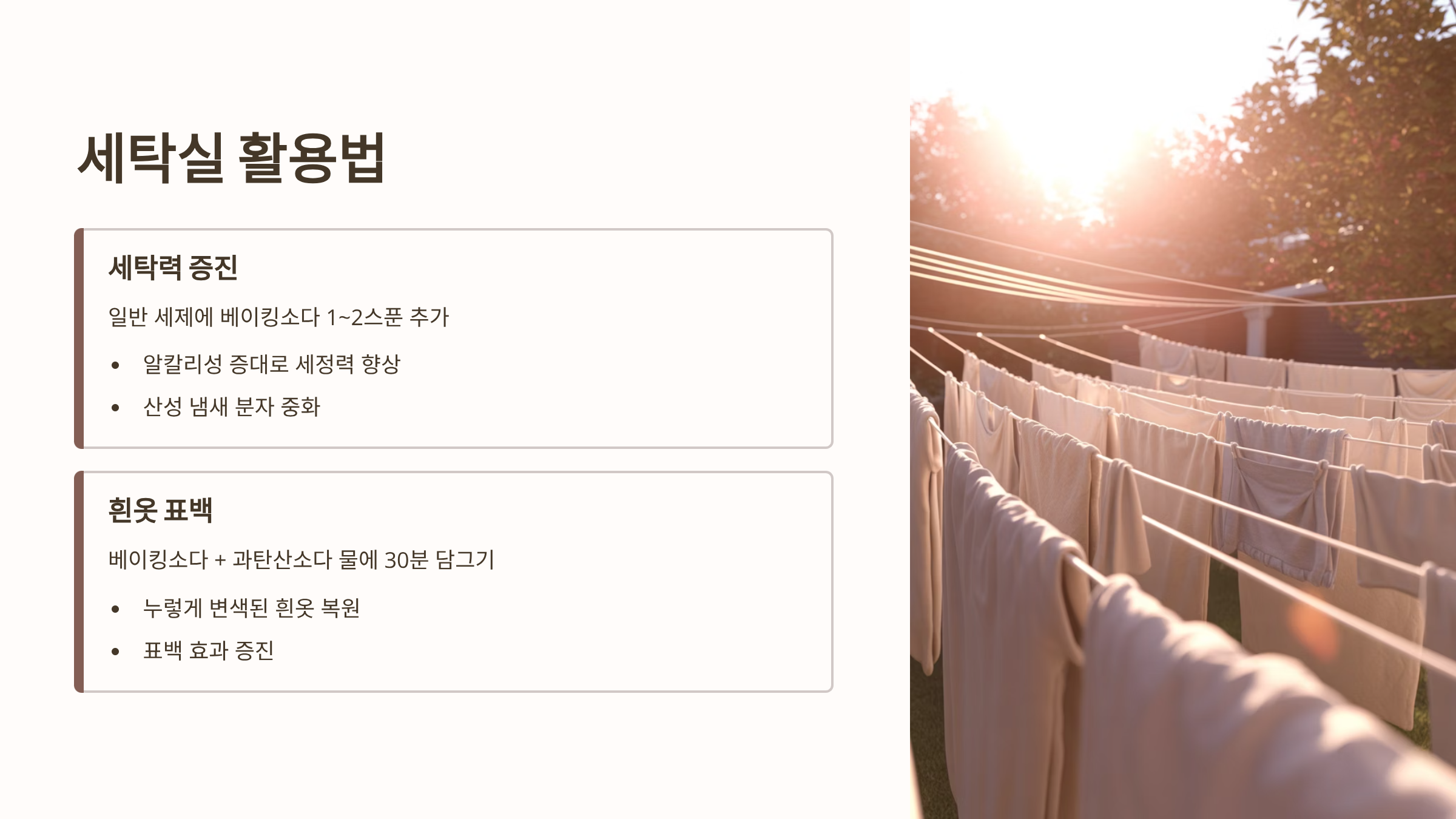 베이킹소다가 만능 세제로 불리는 과학적 원리를 분석하고, 주방, 세탁실, 욕실 등 실생활 공간별로 베이킹소다를 활용하는 구체적인 꿀팁을 제시합니다.