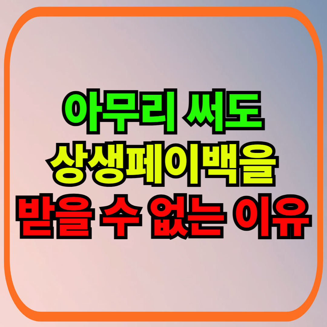 - 신청 기간 준수 실패: 상생페이백 신청은 기간이 정해져 있어, 기한 내에 신청하지 않으면 자동으로 환급 대상에서 제외됩니다.
