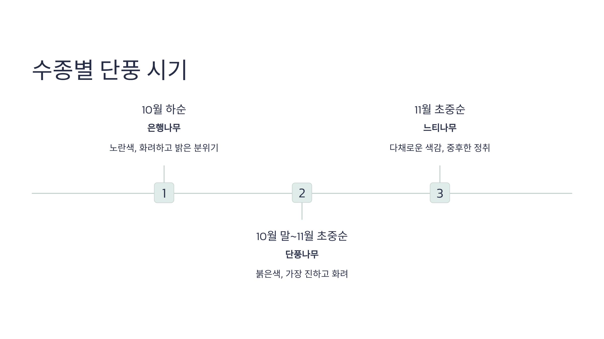 - 시기: 10월 말부터 11월 초중순에 절정을 이룹니다.