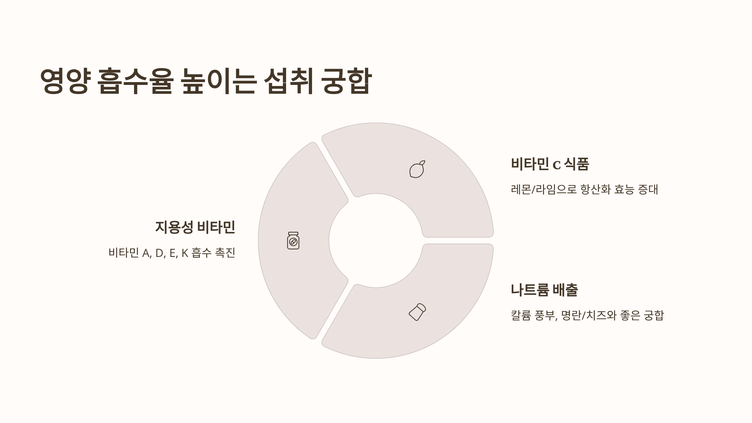 - 비타민 C 식품과 함께 (레몬/라임): 아보카도를 레몬즙이나 라임즙과 함께 먹으면 맛의 풍미가 좋아질 뿐만 아니라, 비타민 C의 항산화 효능을 더하고 갈변을 방지하는 일석삼조의 효과를 얻을 수 있습니다.