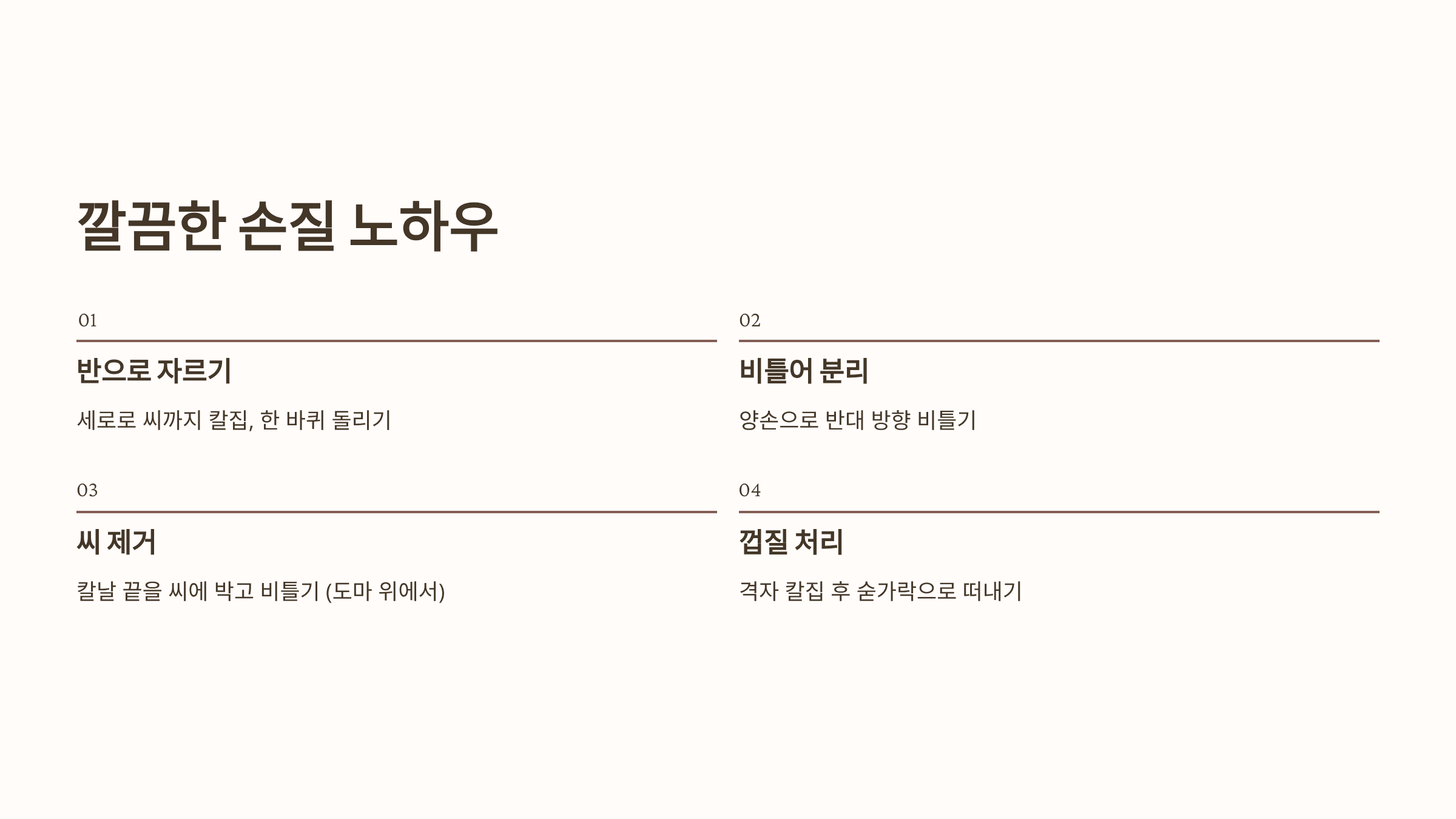 씨 제거부터 껍질 분리까지, 깔끔한 손질 노하우