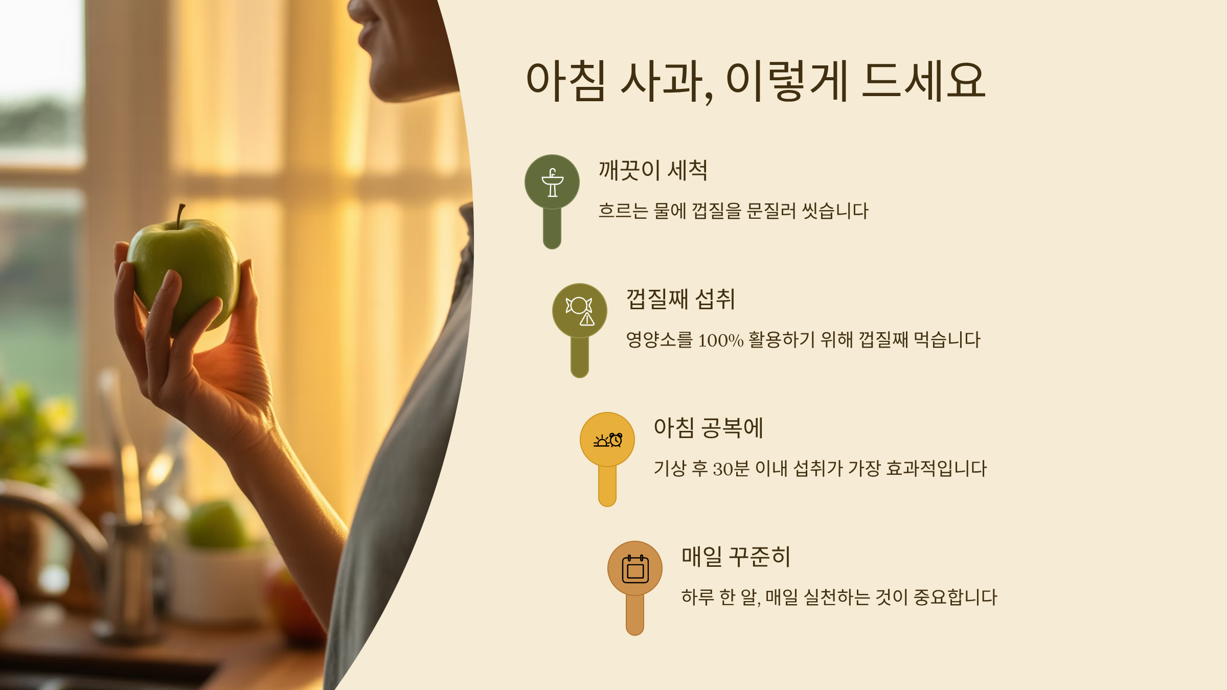 특히 환절기나 면역력이 떨어지기 쉬운 계절에 아침 사과를 습관화하면 감기 예방 효과가 높아집니다.