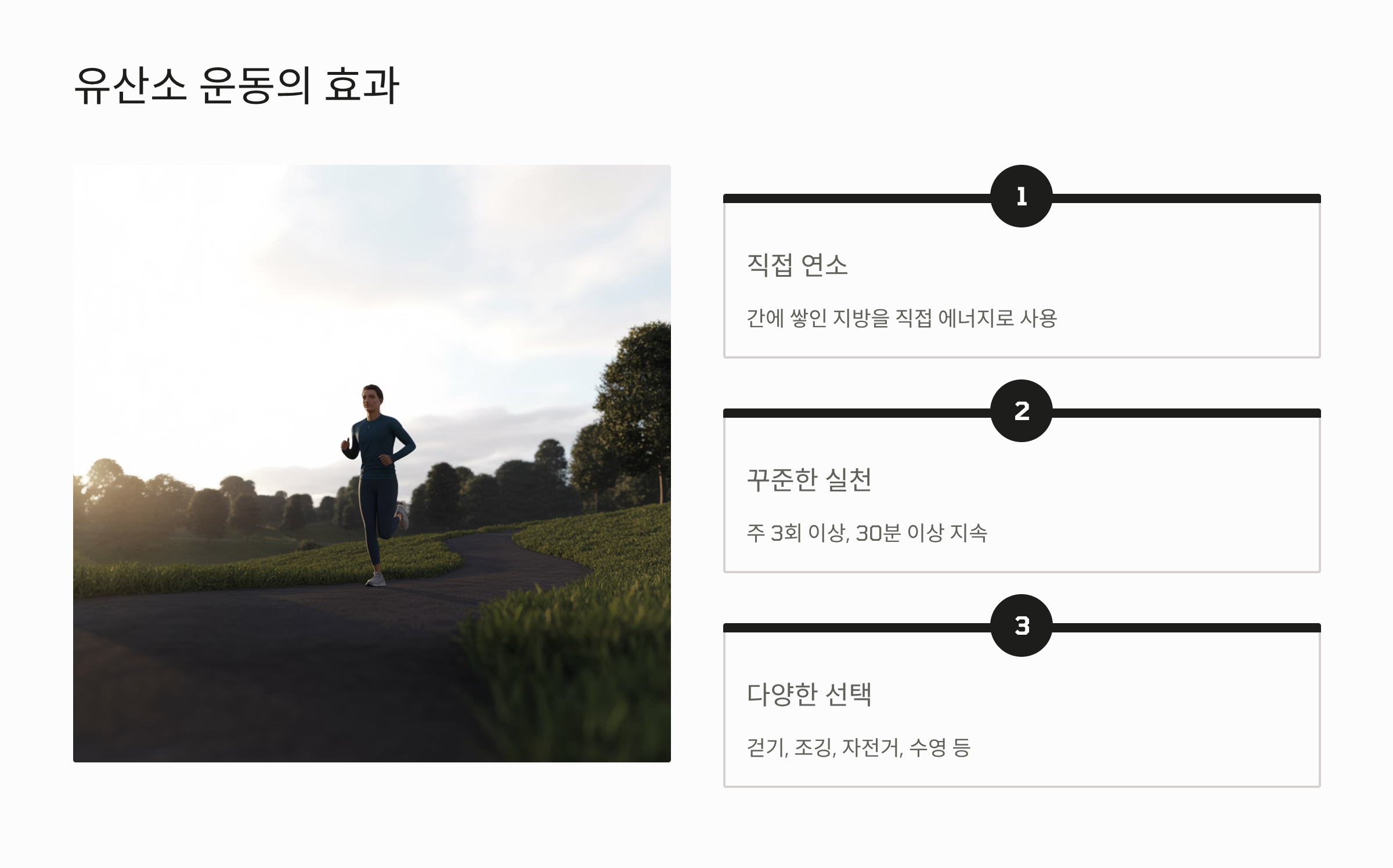 - 규칙적인 유산소 운동: 유산소 운동은 간에 쌓인 지방을 직접적으로 연소시키는 데 가장 효과적입니다. 주 3회 이상, 30분 이상의 걷기, 조깅, 자전거 타기 등을 꾸준히 실천해야 합니다.