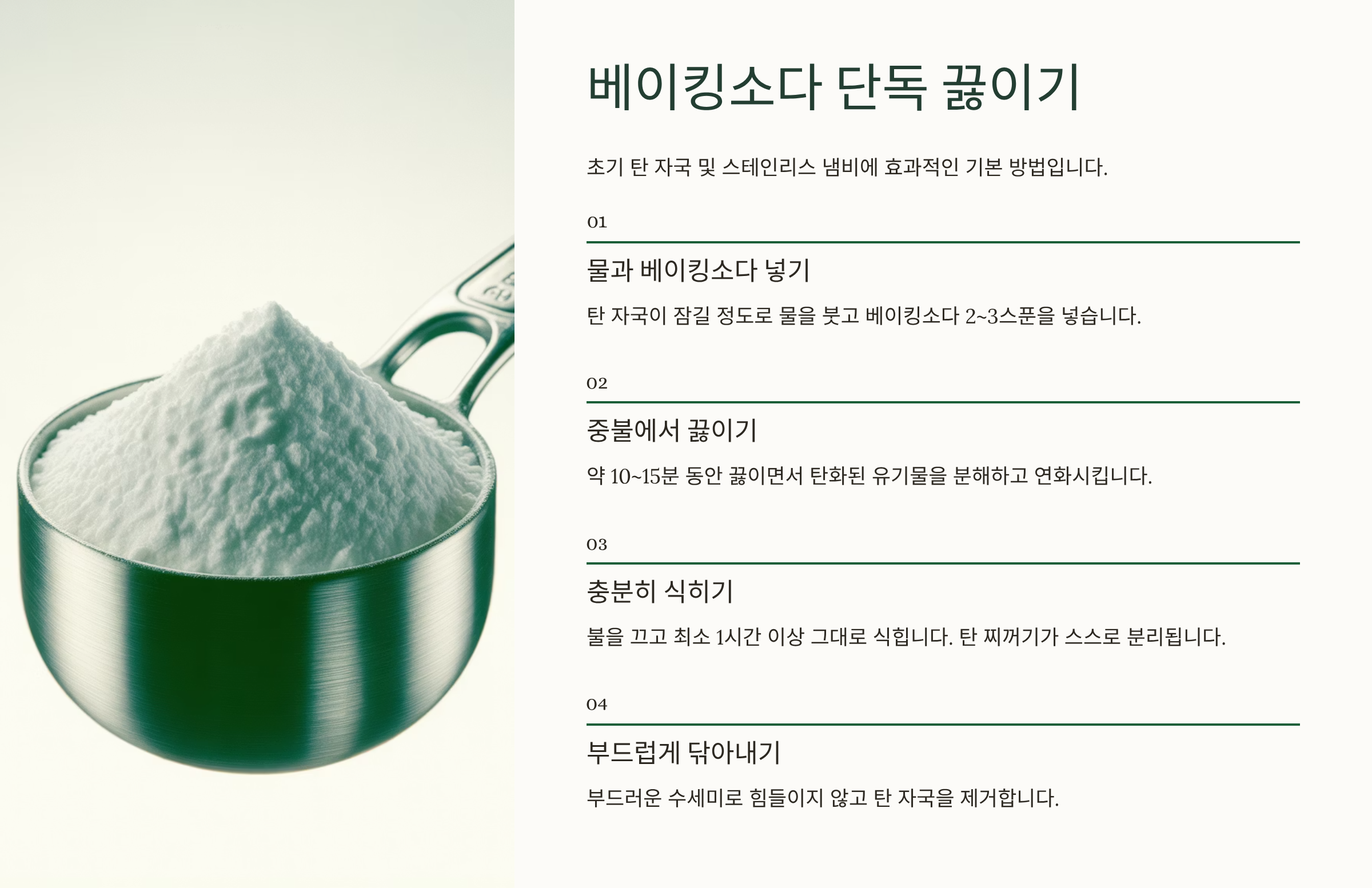 1) 베이킹소다 단독 끓이기 (초기 탄 자국 및 스테인리스용)
