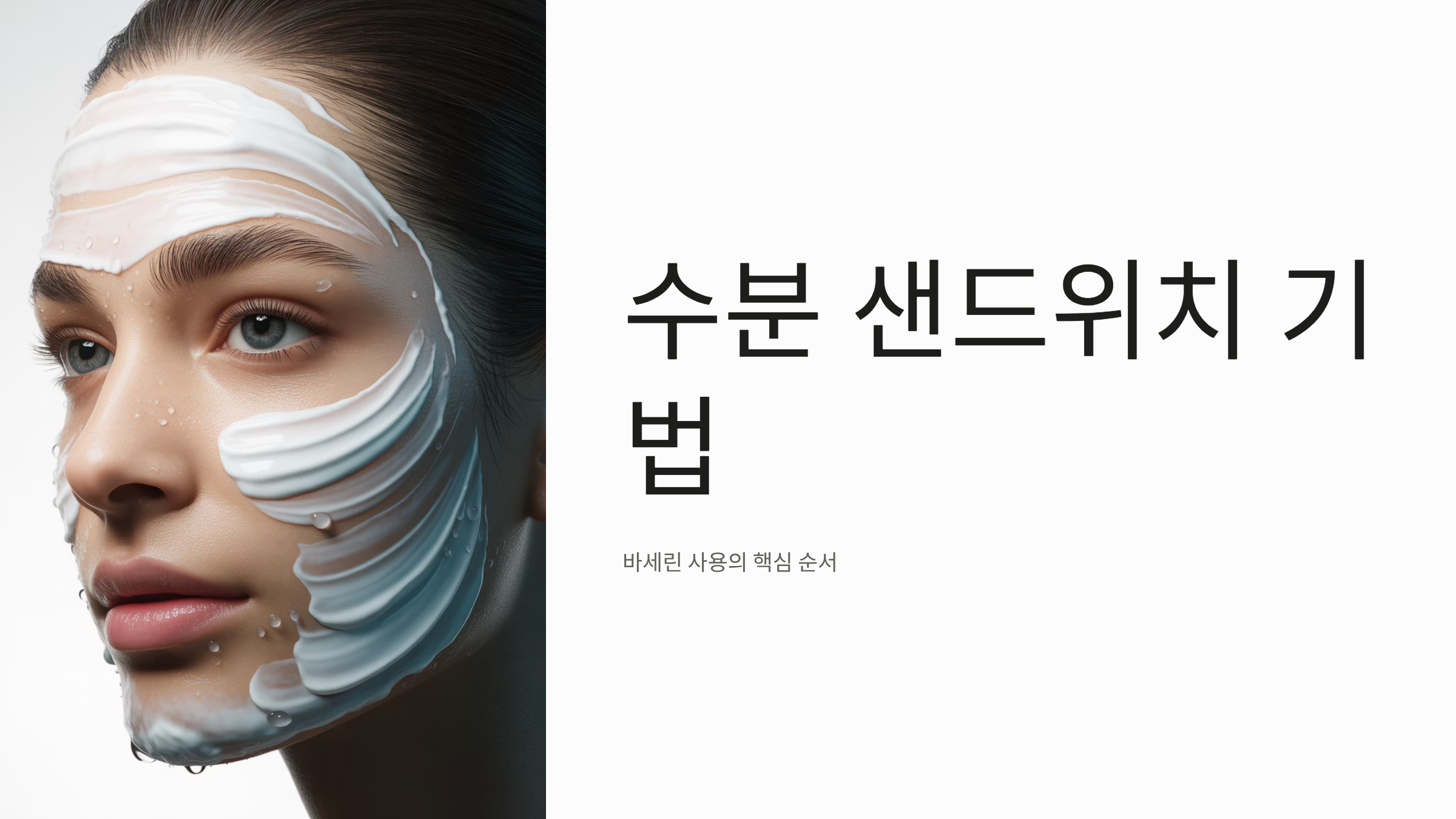 바세린과 히알루론산 크림을 함께 사용하여 수분을 피부 깊숙이 가두는 '수분 샌드위치 기법'을 구체적으로 제시합니다.