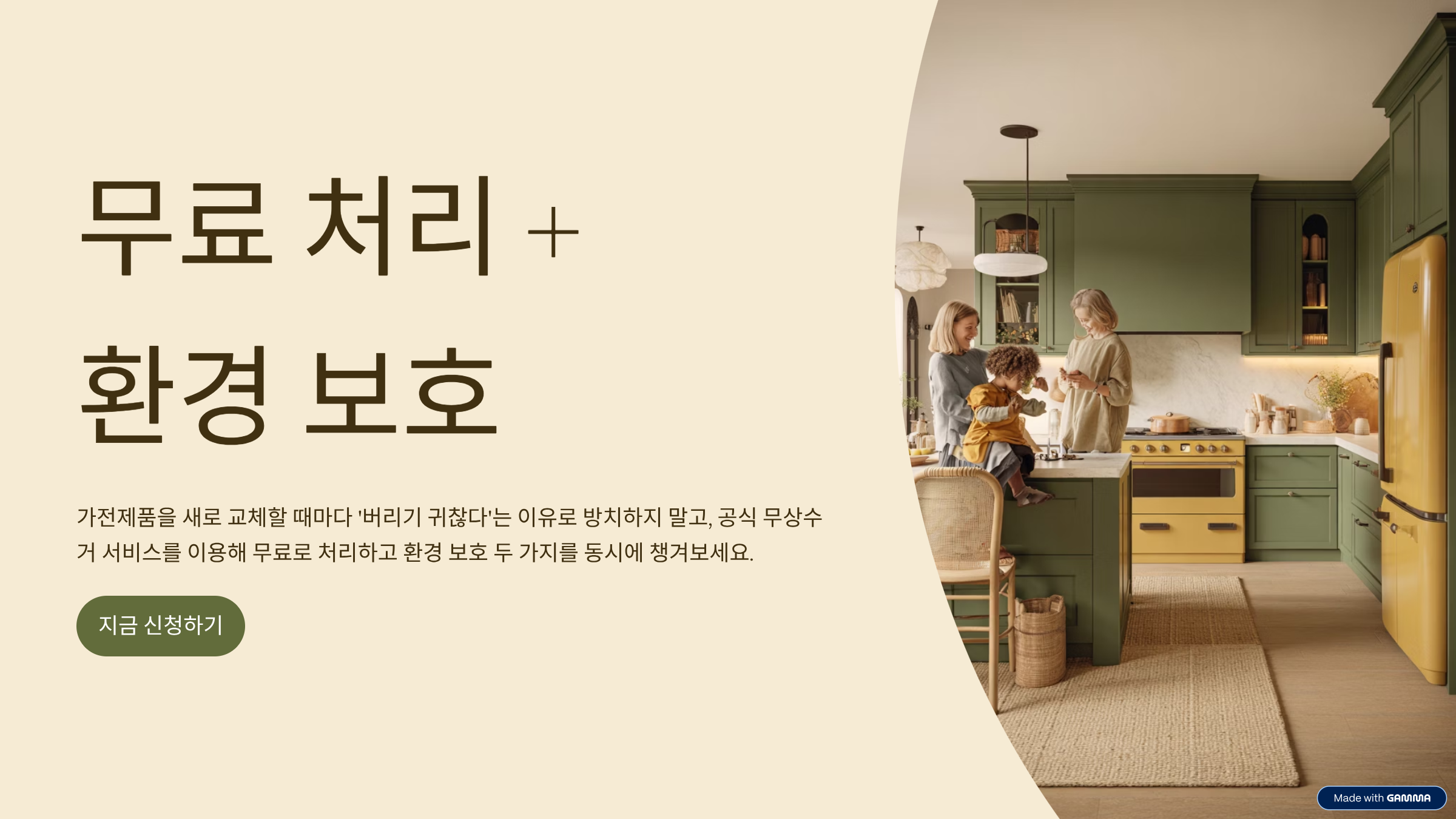 즉, 폐가전 무상수거 서비스는 가정의 불편 해소뿐 아니라 환경 보호에도 직접적인 기여를 하고 있습니다.